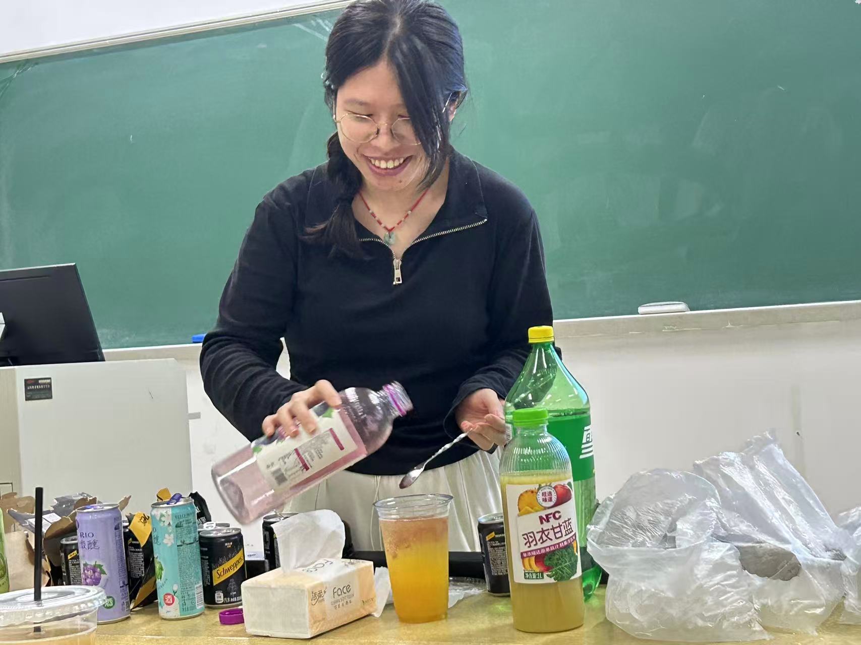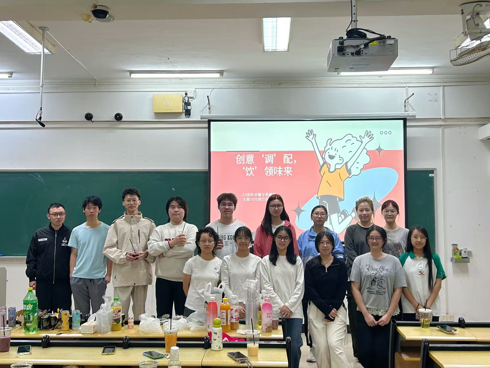 为深入贯彻落实立德树人根本任务,丰富团员青年的课余文化生活,激发创新潜能与团队协作精神,2025年10月24日,23食科卓越全英班团支部策划并成功举办了以“创意‘调’配,‘饮’领‘味’来”为主题的十月团日活动。本次活动将食品科学专业特色与团支部建设深度融合,通过一场别开生面的创意饮品调制实践,为团员们搭建了一个创意实现的平台,取得了显著育人实效。