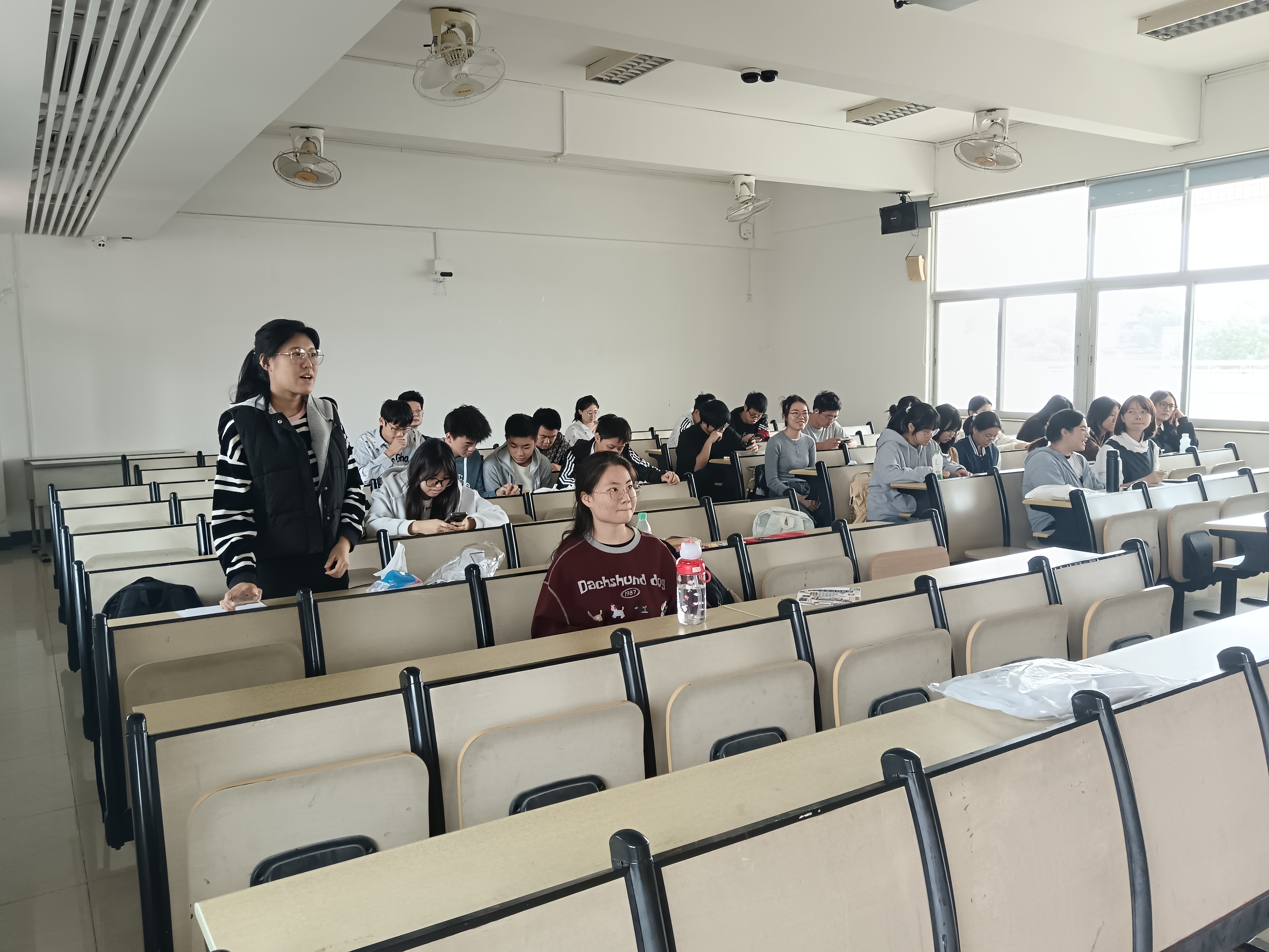 活动伊始,梁易琳同学讲述了本次活动的背景和目的。之后,在她的组织下,大家共同观看了展现国家综合实力的主题视频《2025奋进中国》。该视频向大家展示了这一年来我国取得的成就以及未来的奋斗目标,让同学们在震撼的画面中整体感知奋进中国的步伐,增强同学们的民族自豪感和对国家发展道路的认同感。