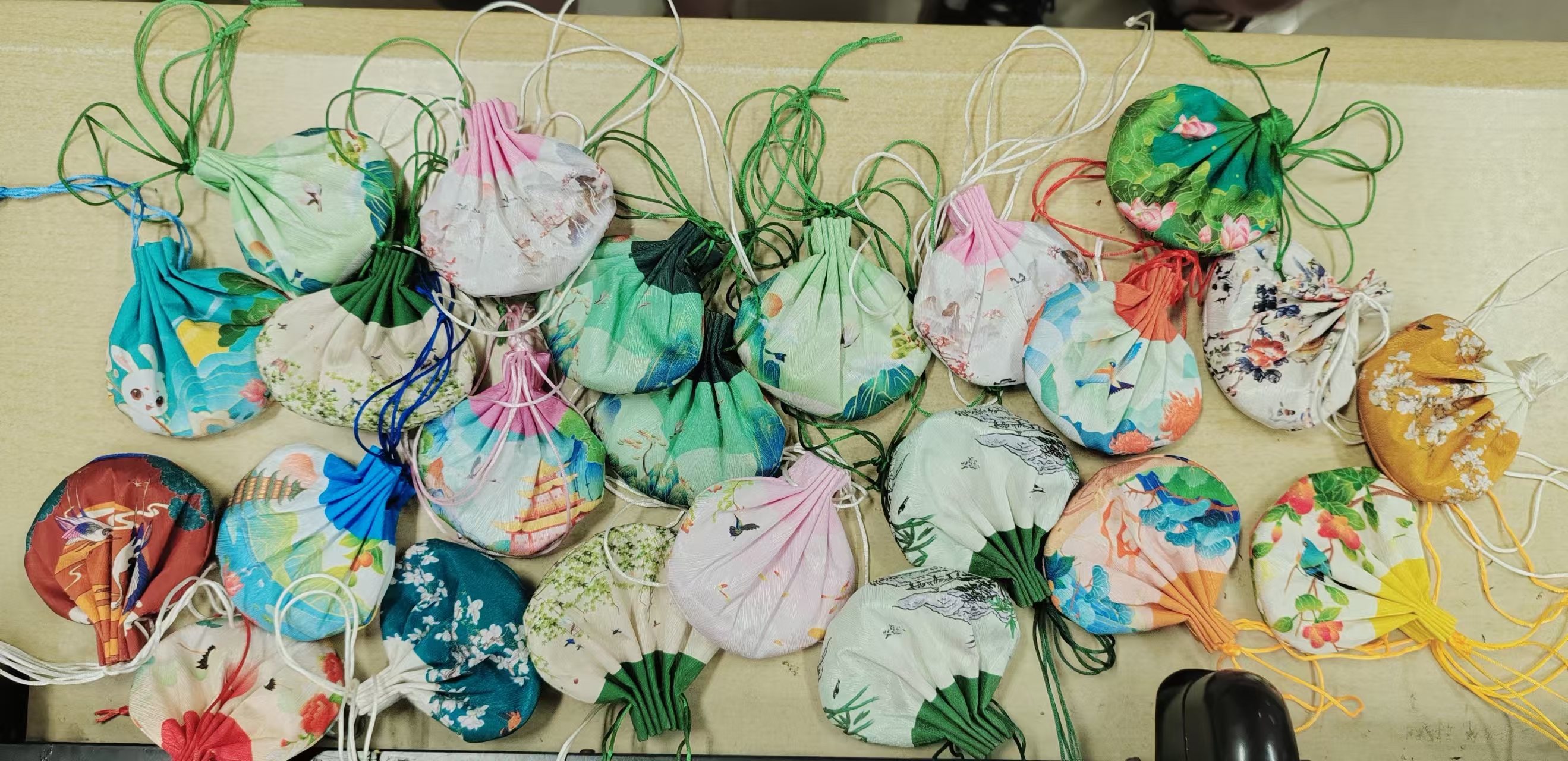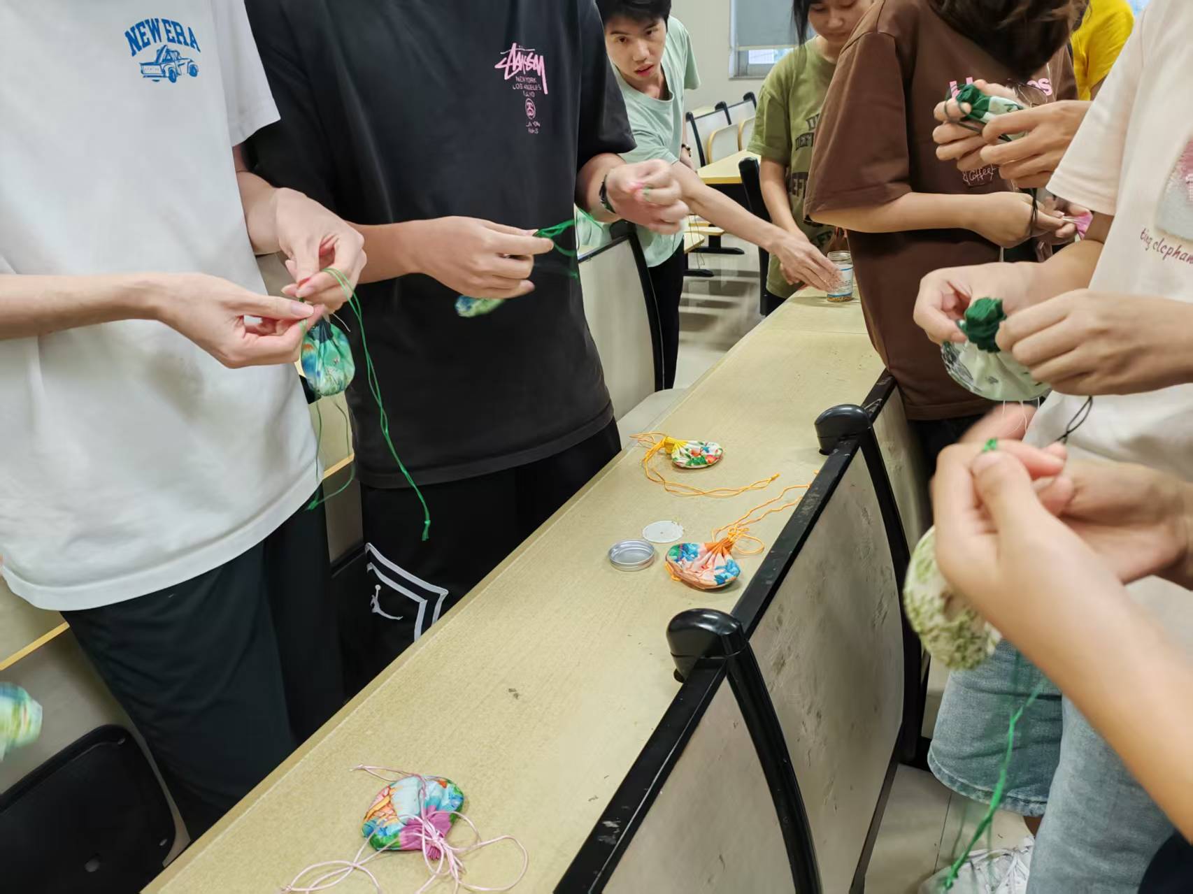 在随后的香囊制作环节中,同学们兴致盎然,相互协作。大家将提前收集或准备好的干燥桂花作为主要香料,辅以其他具有安神、清香功效的天然草本,细心装入预先备好的各式布袋中。填充香草、收口结穗,每一步都凝聚着大家的专注与巧思。活动现场气氛温馨而热烈,空气中弥漫着桂花特有的甜暖香气与中草药的清芬。在协作手作的过程中,同学们不仅交流着制作技巧,更分享着对秋日的感受、对传统文化的理解,彼此间的情谊在方寸香囊的传递与共制中悄然深化。