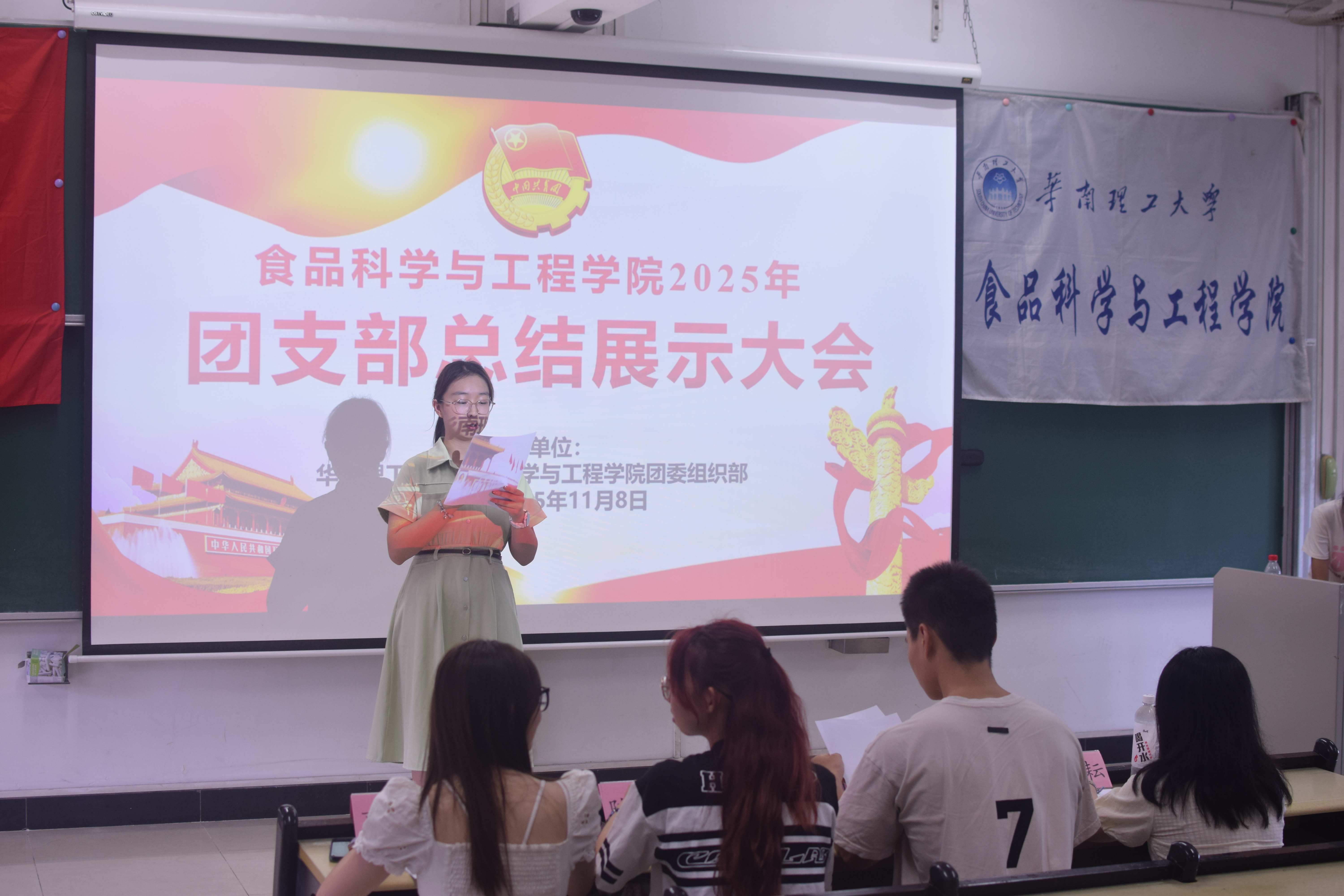 2025年11月8日15:00-17:30,华南理工大学五山校区34号楼502教室内青春洋溢、掌声阵阵,食品科学与工程学院“团旗引领,筑梦前行”2025年团支部总结展示大会在此成功举办。本次大会不仅是对2024-2025学年各团支部工作成果的集中检阅,更聚焦短板反思与未来规划,为团组织高质量发展凝聚青春力量。