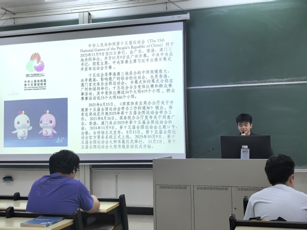 活动伊始,团支书王亮灿同学通过精心制作的PPT与视频资料,带领全班同学回顾了第十五届全国运动会的精彩瞬间。从开幕式上三地青年携手跨越珠江的震撼场面,到赛场上运动员们挑战极限、超越自我的拼搏身影,一幕幕动人的画面让同学们深刻感受到了体育精神的魅力与力量。通过观看全运会盛况,同学们不仅拓宽了视野,更在心灵深处种下了追求卓越、勇于挑战的种子。