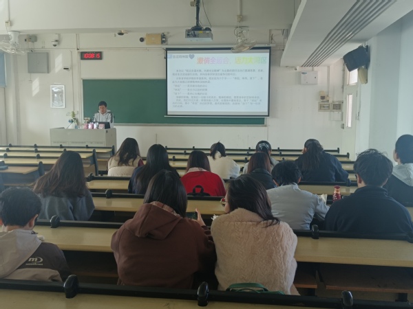活动以院运会风采回顾拉开序幕。团支书梁世钧同学通过PPT展示班级成员参赛影像,短跑赛道上的疾行、接力赛中的交接、跳远沙坑前的腾跃等画面,将现场气氛迅速带入高潮。多名参赛同学结合自身经历分享感悟,从赛前训练的坚持到赛中协作的重要性,真实的体验引发全员共鸣,进一步凝聚了班级集体荣誉感与凝聚力。