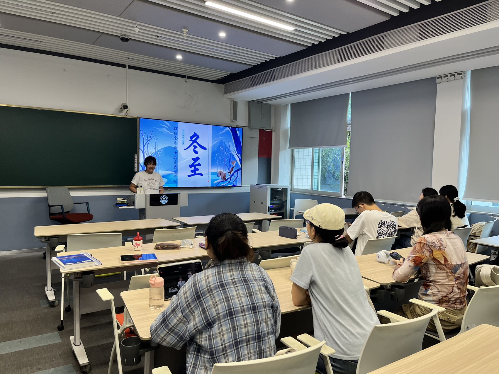 活动以“文化学习+情感交流”的形式有序开展:团支书苏悦首先发表讲话,围绕冬至节气的历史渊源、民俗内涵展开宣讲,详细介绍了祭祖敬老、吃饺子汤圆、数九寒天等传统习俗,将节气文化与团员思想引领相结合,让大家在学习中感受中华文脉的深厚底蕴,体会“冬至阳生”的希望与力量。