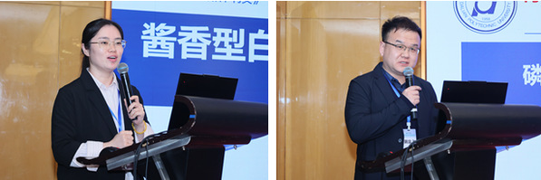 第二轮学术交流由贾栩超研究员、梁书利教授主持。华南理工大学生物科学与工程学院副院长梁书利教授围绕食品功能因子高效生物制造展开分享,阐述了功能因子规模化、高效化制备的关键技术与突破方向;河南农业大学食品学院孙灵霞教授以传统肉制品为研究对象,汇报了科技赋能下肉制品风味与品质的解密与重塑技术,为传统肉制品的现代化升级提供了新方案;此外,江南大学食品学院张程程副教授研究了阿拉伯聚糖利用基因簇对肠道微生物的调控作用,及其在缓解便秘中的功效机制,为功能性食品的研发提供了新靶点;北京工商大学食品与健康学院李贺贺副研究员针对酱香型白酒空杯留香特性,解析了其特征香气成分及形成机制,助力白酒产业的品质提升与风味创新;大连工业大学食品学院阴法文副教授探讨了磷脂和多酚及其烃基酯对脂质氧化的协同抑制效应与作用机制,为食品保鲜与品质稳定提供了新的技术支撑。