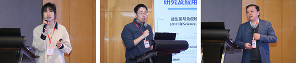 聘书颁发仪式后,主旨学术报告环节精彩纷呈、思想激荡,本次主旨报告由广东省科学院微生物研究所副所长陈谋通研究员主持。大连海洋大学食品科学与工程学院副院长桑雪副教授、江南大学食品学院副院长翟齐啸教授、浙江大学生物系统工程与食品科学学院陈启和教授,分别围绕各自深耕领域作了高水平学术报告。其中,桑雪副教授聚焦海参煮液多糖的生理活性,系统汇报了《海参煮液多糖基于肠-脑轴发挥抗肥胖活性的机制研究》,深入解析了海参煮液多糖通过调控肠-脑轴信号通路、改善肠道微生态,进而发挥抗肥胖作用的核心机制,为功能性多糖的开发与应用提供了重要理论支撑;翟齐啸教授围绕益生菌与食物组分互作展开分享,详细阐述了益生菌与不同食物组分(碳水化合物、蛋白质、脂质等)的互作规律、调控机制及对食品品质与人体健康的影响,为益生菌食品的精准研发提供了新思路;陈启和教授则聚焦细胞基新蛋白研究,介绍了细胞基新蛋白的制备技术、功能特性及在食品领域的应用前景,为解决传统蛋白资源短缺、推动食品蛋白产业创新发展提供了新路径。报告内容兼具科学性、创新性与前瞻性,为与会者带来了深刻的学术启迪与思路拓展。