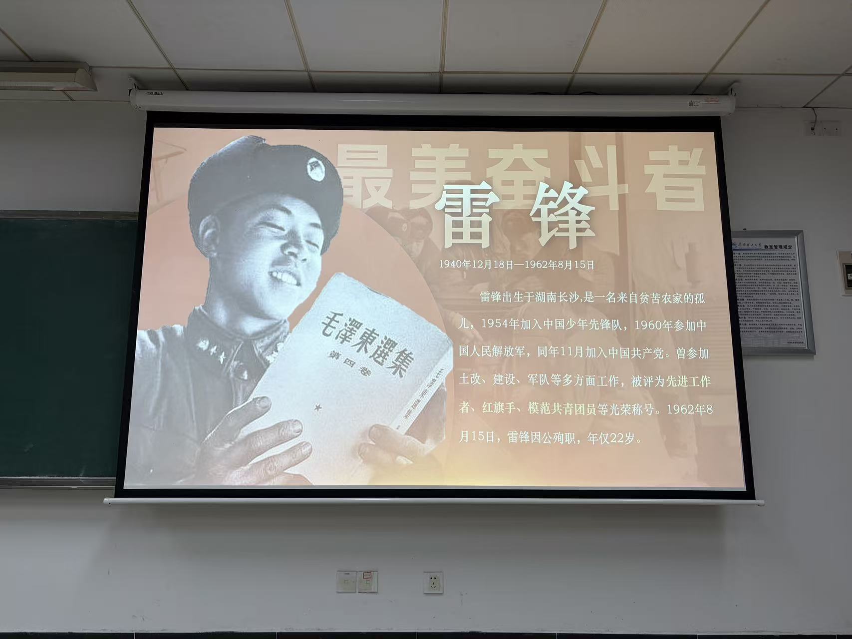 活动伊始,B2班团支书曹玲为全体同学详细讲述雷锋同志的生平简介。雷锋短暂而光辉的一生,让同学们为其坎坷的出生经历深感同情,更为他自强不息、无私奉献的人生追求由衷敬佩。现场氛围庄重而温暖,雷锋的形象在同学们心中愈发清晰鲜活。在雷锋事迹分享环节,同学们主动起立,深情讲述雷锋同志的感人故事。从被称作“人民勤务员”的点滴善举,到刻苦钻研、永不松懈的“钉子精神”,再到甘于奉献、不求回报的“可敬的傻子”精神,一段段事迹打动人心,让大家深刻体会到雷锋精神的质朴与伟大。随后,全体同学共同学习雷锋精神的时代内涵,深刻认识到雷锋精神既是积极进取、奋发向上的人生姿态,也是心怀大爱、崇德向善的价值追求。在当代雷锋学习环节,团支书重点介绍了郭明义、庄世华两位先进典型人物,他们以实际行动传承雷锋精神,成为新时代的精神标杆,为同学们树立了学习榜样。活动尾声,同学们纷纷表态,将以雷锋及当代模范为榜样,从身边小事做起,用实际行动传承和弘扬雷锋精神。