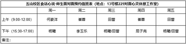 -五山校区:13号楼229对面(心灵休憩工作室)