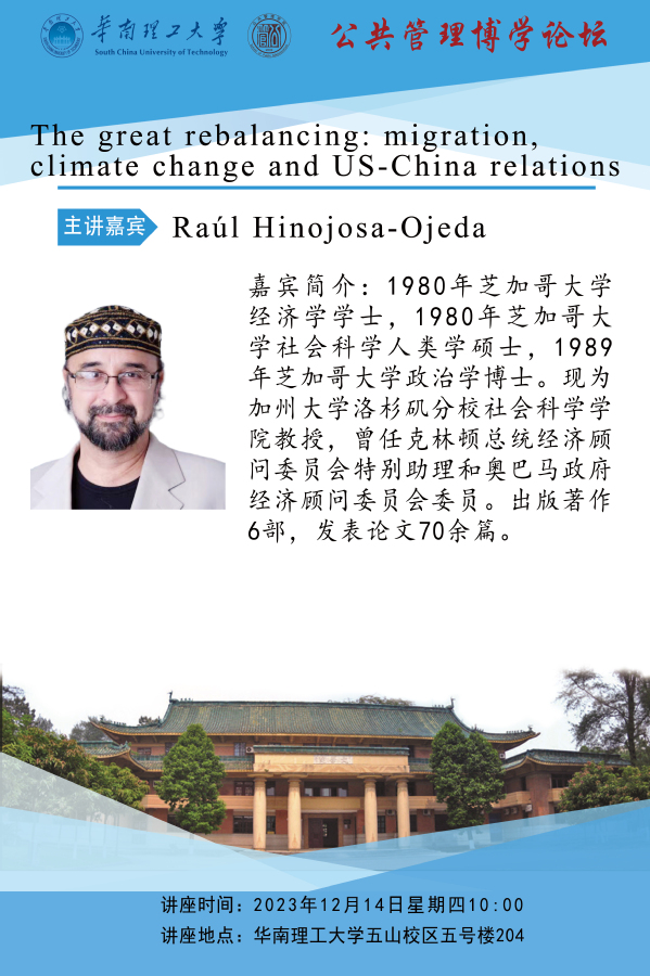 【讲座预告】The great rebalancing: migration, climate change and US-China relations,2023年12月14日星期四 10时