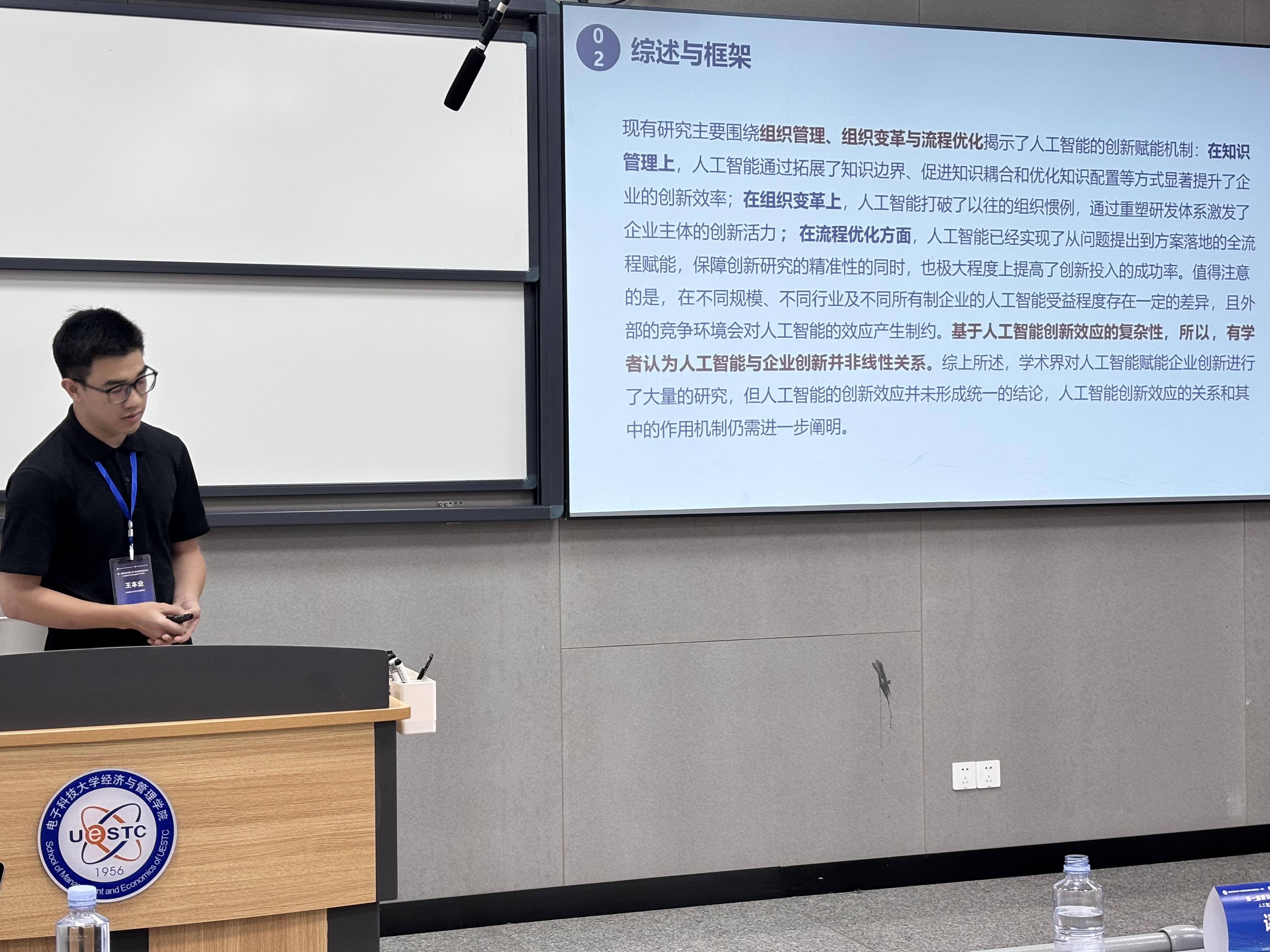 华南理工大学公共管理学院2024级博士生王本业受邀参会并在“人工智能与新质生产力”分论坛上做了题为“AI赋能‘陷阱’:人工智能与企业创新绩效倒U关系”的汇报,与会专家在肯定该研究的基础上,对论文创新性、理论意义、现实意义三方面进行了点评并给出了指导意见。