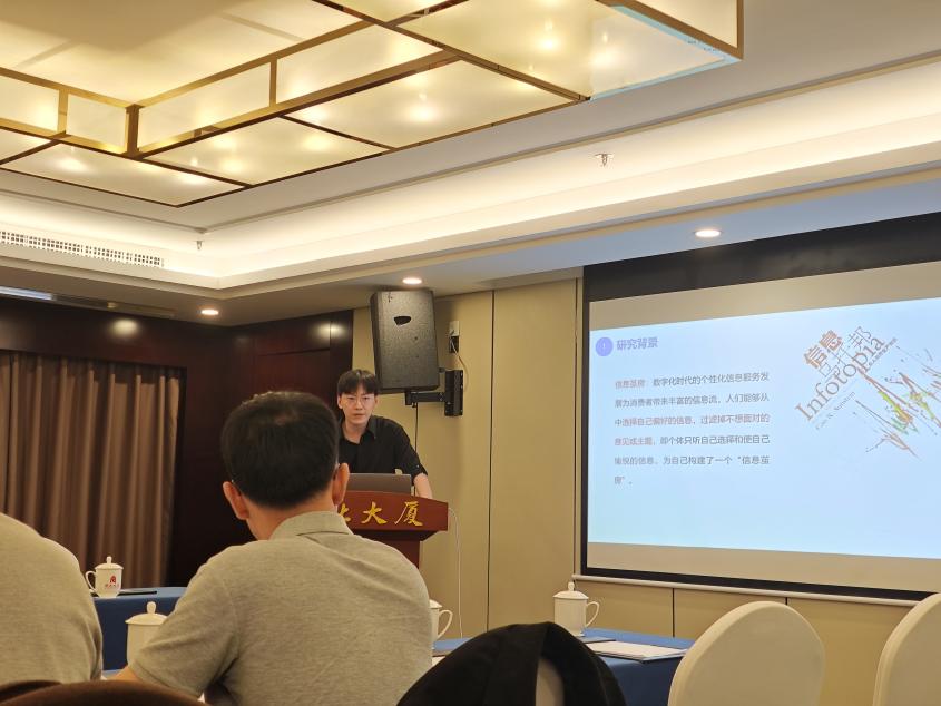 我院博士生赵贤在“数字化生存与智慧城市”分论坛上做了题为“破茧成蝶:数字治理与信息茧房”的汇报,与会专家王凯、陆健与魏新在肯定该研究的基础上,对论文创新性、理论意义、现实意义三方面进行了点评并给出了指导意见。