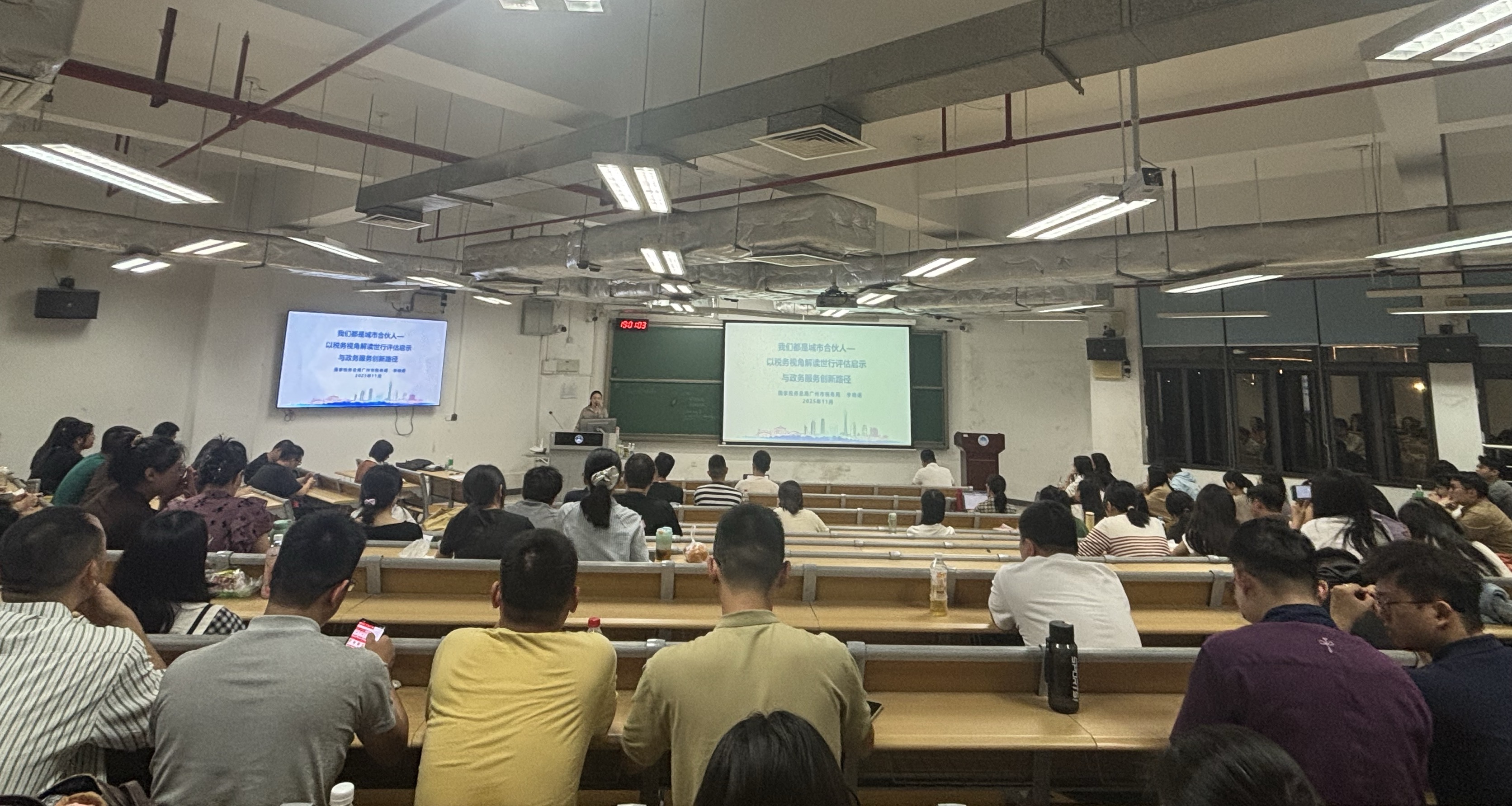 营商环境作为城市发展的核心竞争力,税收服务则是串联政府、企业与市民的关键纽带。为深化MPA学子对政务服务创新的理解,华南理工大学MPA教育中心“笃行”讲座系列第八期于2025年11月15日在博学楼206室举办。本期讲座以“我们都是城市合作人:以税务视角解读世行评估启示与政务服务创新路径”为主题,特邀广州市税务局李晓诺校友主讲,解码税收赋能城市发展的实践路径。