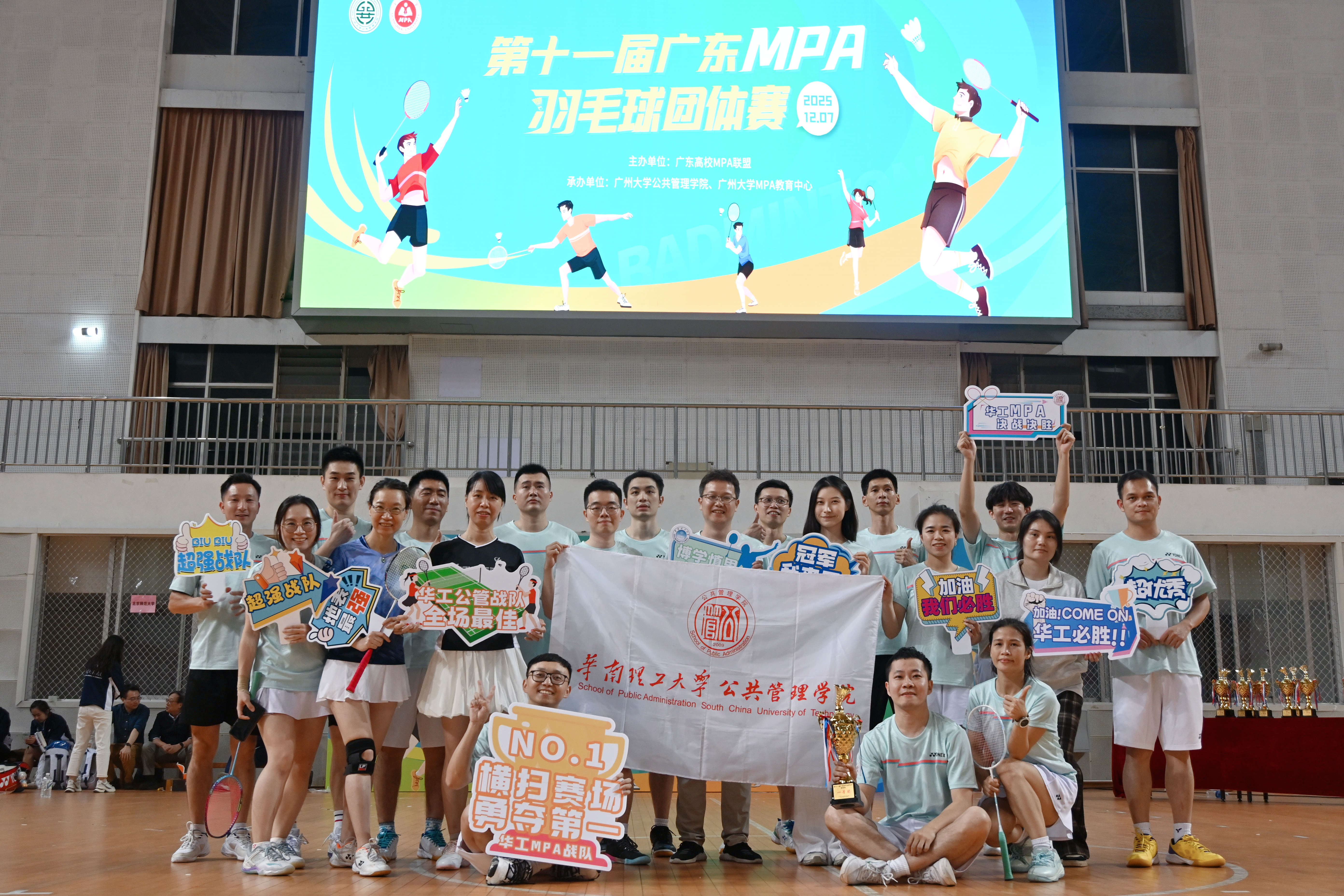 2025年12月7日,第十一届广东省MPA羽毛球团体赛在广州大学(大学城校区)何世杰体育馆圆满落幕。本届赛事由广东高校MPA教育联盟主办,广州大学公共管理学院、广州大学MPA教育中心承办,吸引了广东地区15支队伍、约350名师生参赛,创下赛事创办以来参赛队伍数量之最。