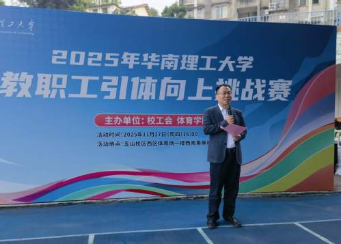 2025年11月27日下午,初冬的暖阳洒满五山校区西区运动场,首届华南理工大学教职工引体向上挑战赛在此隆重举行。来自全校25个二级工会的近200名教职工齐聚运动场,以力量展示风采,用意志挑战极限。学校副校长许勇出席开幕式并致辞。