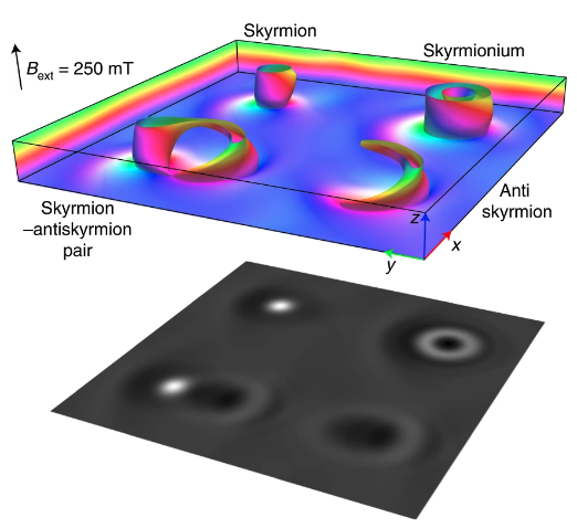 图 1 微磁学计算四种典型磁结构(Skyrmion、Antiskyrmion、Skyrmion-antiskyrmion Pair和Skyrmionium)