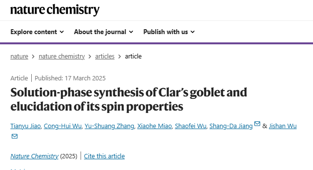 蒋尚达团队&新加坡国立大学吴继善团队:Clar’s goblet中的两个独立自旋在基态下是纠缠的