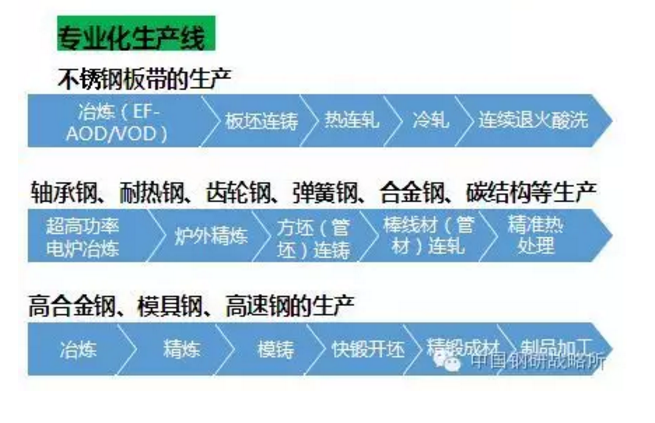 二是专业化特钢生产线,如不锈钢板带生产线,轴承钢、耐热钢、齿轮钢、弹簧钢、合金钢、碳素结构钢等生产线,高合金钢,模具钢、高速钢生产线等。