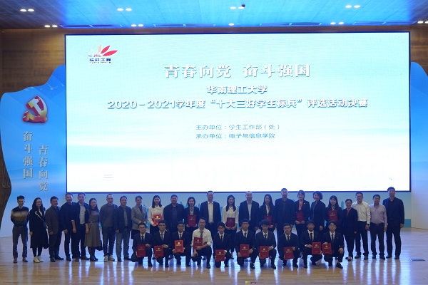 11月18日晚,华南理工大学2020-2021年度“十大三好学生标兵”评选活动决赛在五山校区清清文理楼举行,活动由学生工作部(处)主办、电子与信息学院承办。党委组织部、党委宣传部、学生工作部(处)、校团委、教务处、电子与信息学院等有关单位负责人担任专家评委,各院(系)学生工作负责人、辅导员、班主任和学生代表等200余人参加了评选活动。