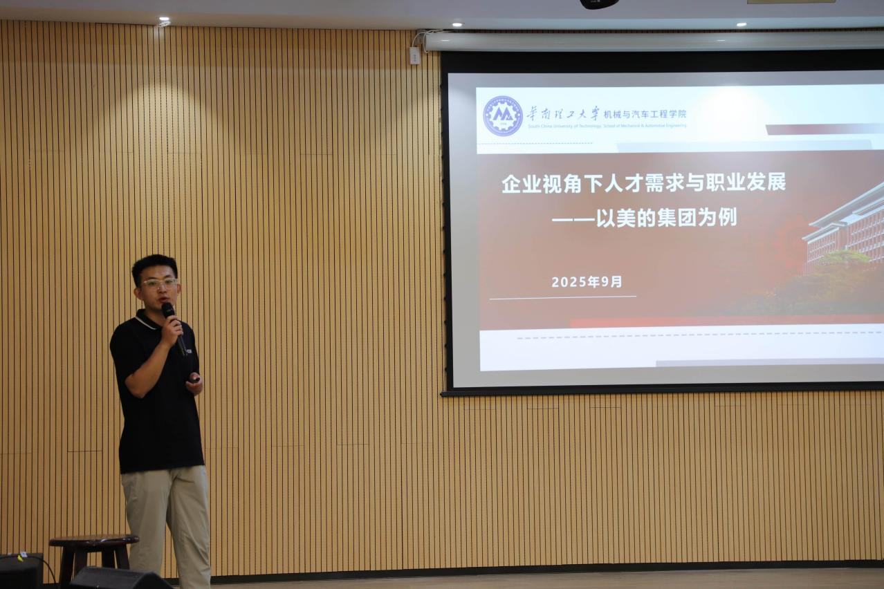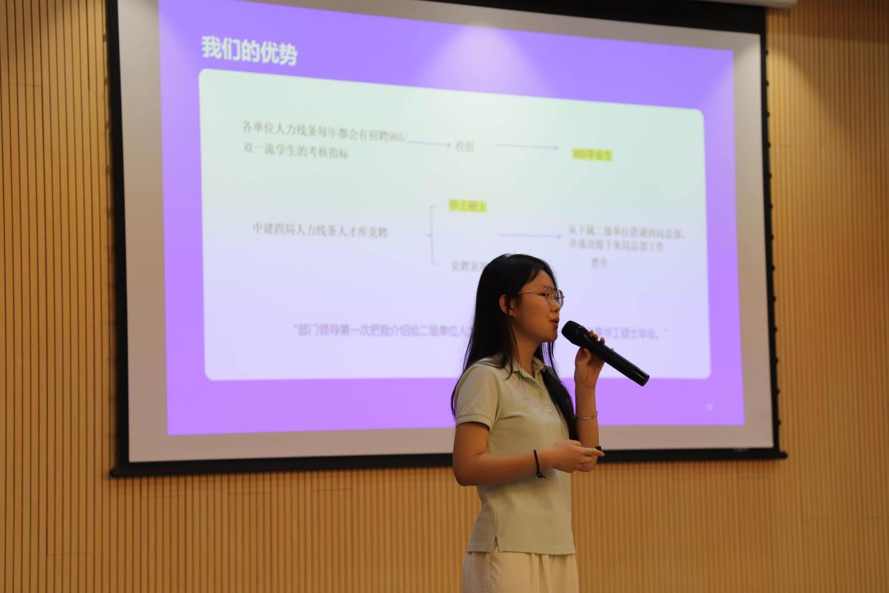 来自土木与交通学院的任若雨老师介绍在中国建筑第四工程局的挂职经历,分享了在职华工校友的访谈。任老师拓展了在校能力培养的角度,鼓励同学们提升新兴专业能力、团队管理能力和综合素质。