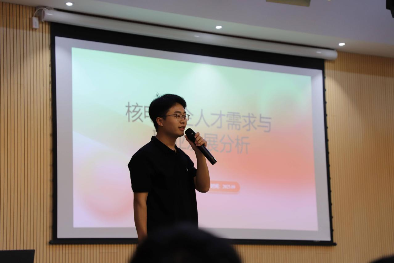 材料科学与工程学院的代云飞老师围绕挂职单位中广核陆丰公司,介绍了企业技术路线、岗位需求以及选才标准。他指出,核电央企选才的三大标准为“工程能力”“安全素养”和“创新意识”,企业构建了人才培养的“三大工程”“四大计划”。挂职经历启发辅导员三项转化任务,即升级就业指导、引进行业体验活动和建设人才蓄水池。