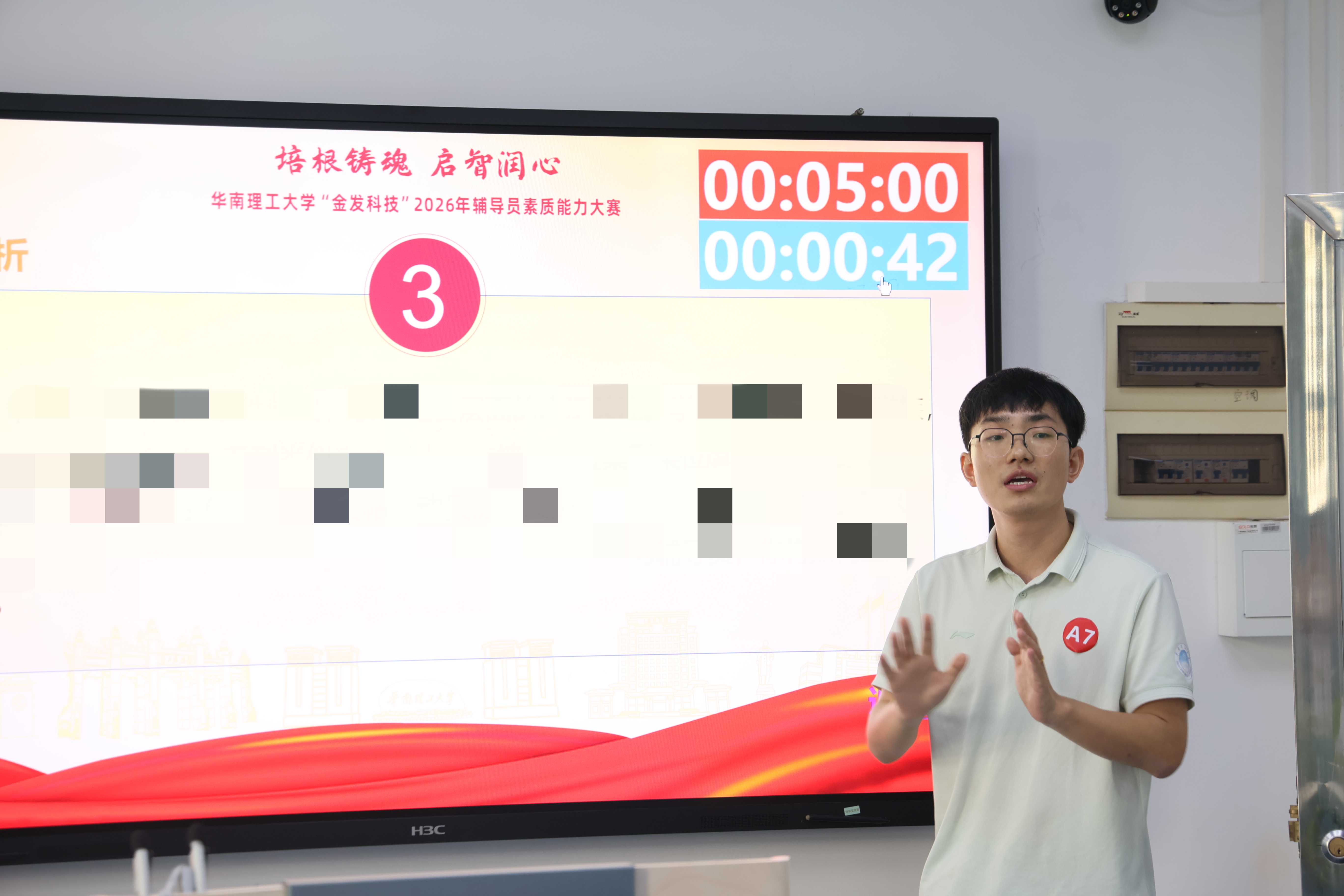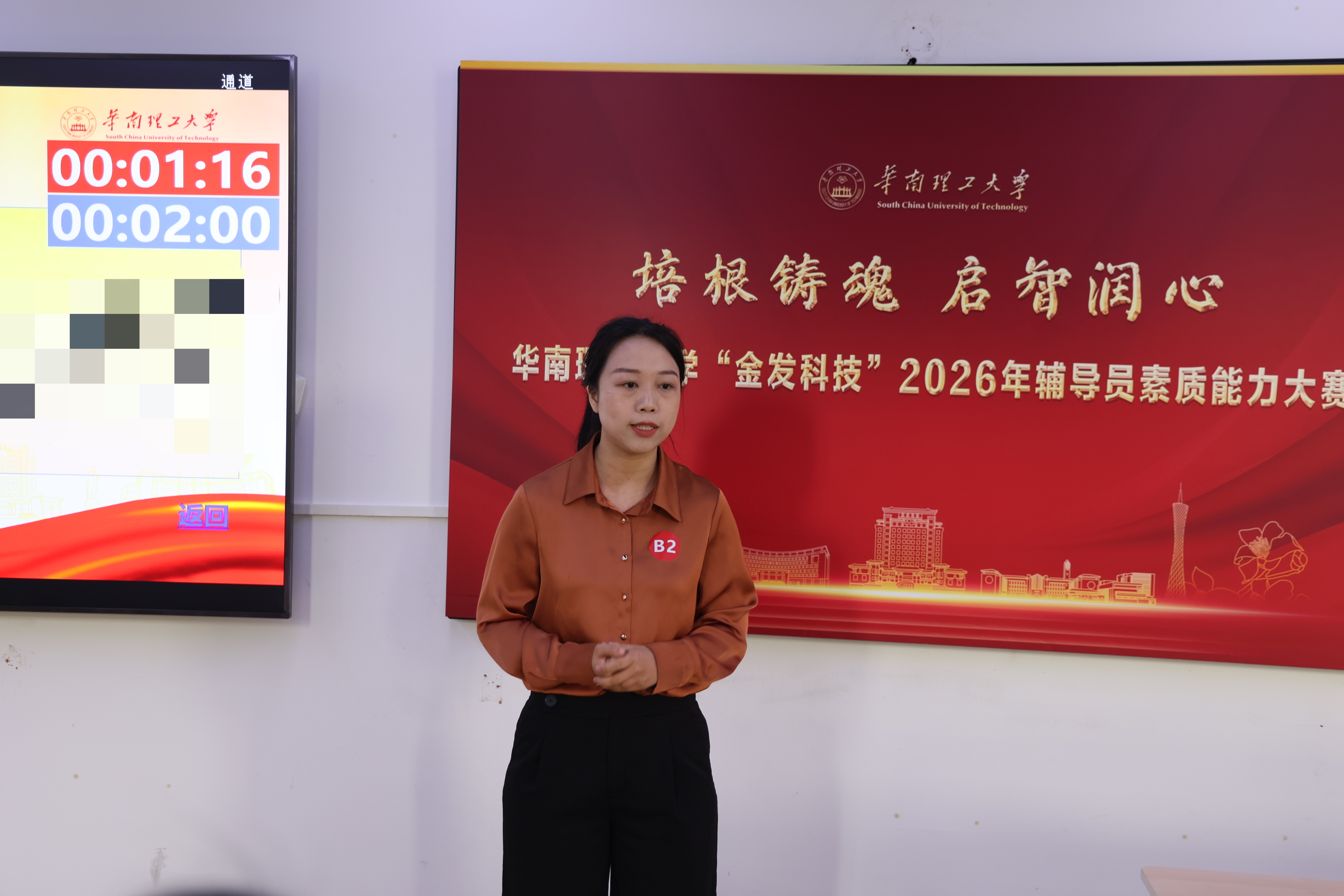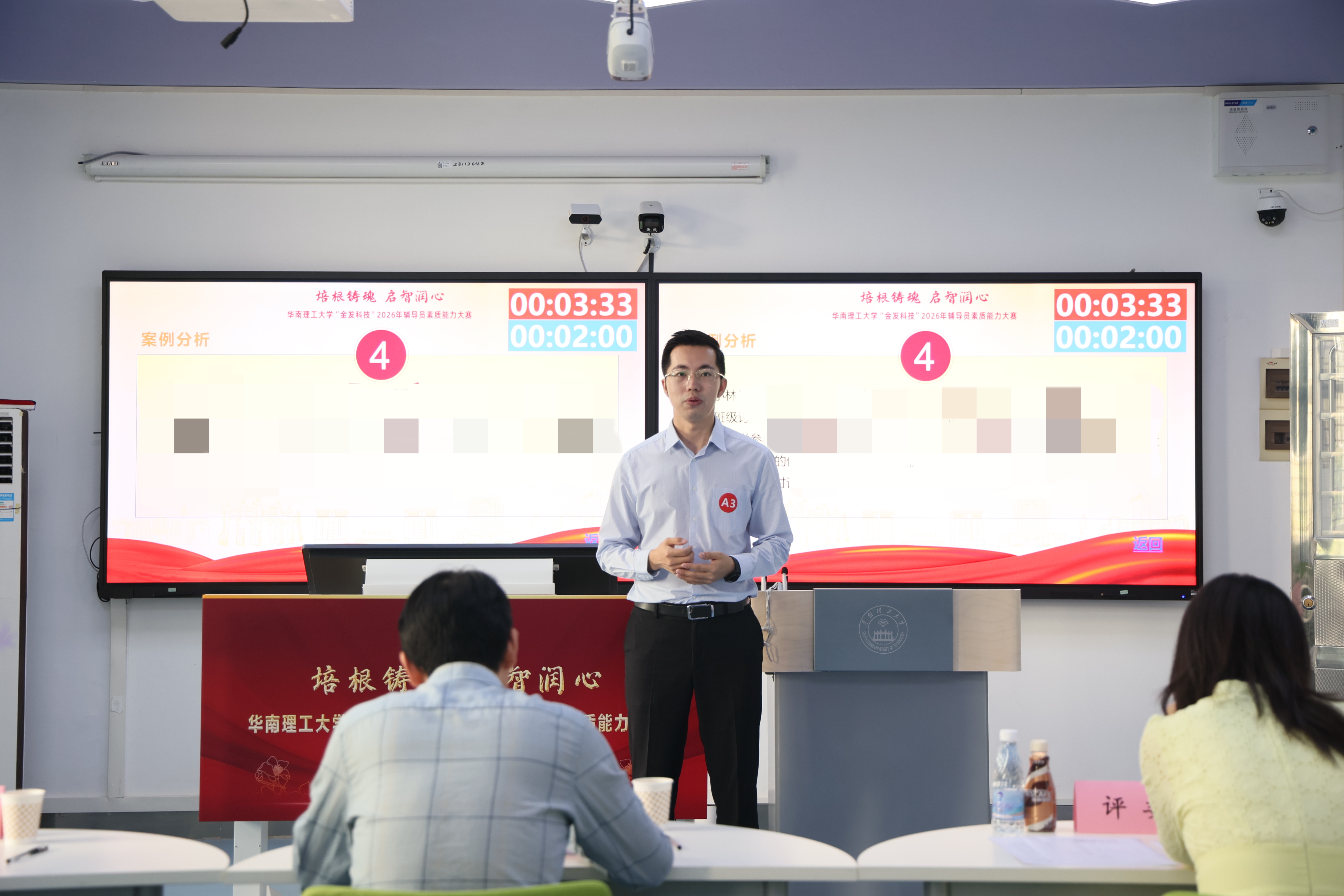 为切实提高我校辅导员的理论水平、职业能力和专业素养,推动我校思想政治工作高质量发展,根据2026年华南理工大学“金发科技”辅导员素质能力大赛相关安排,4月17日,在五山校区1号楼举办了辅导员素质能力大赛第二阶段实践技能比赛,入围第二阶段的30位辅导员参加比赛。