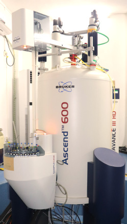 600M超导核磁共振波谱仪 Superconducting Fourier Transform Nuclear Magnetic Resonance Spectrometry 厂商:德国Bruker 公司 型号:AVANCE III HD 600 | 主要性能指标: 1、高性能主动屏蔽超超屏蔽 ASCEND超导磁体系统,14.095特斯拉,54mm室温腔,射频发射系统配备3个射频通道 2、B-SVT Bruker高精度变温控制单元;温度设置幅度:+/-0.1ºC;温度测量精度:+/-0.01ºC;BCU非液氮制冷单元,控温范围:室温~0ºC 3、5毫米二合一宽带探头,检测核:1H和19F, 以及共振频率在15N-31P之间所有核;变温范围:--150ºC ~ +150ºC;1H灵敏度≥850:1,13C灵敏度≥330:1 4、5 毫米TXI 反相三共振探头,检测核:1H/13C/15N 1H灵敏度≥1200:1;1H 线性≤6/12Hz 应用范围: 1、多种核素的核磁共振检测,如1H、13C、31P、19F、29Si、17O、11B、27Al等 2、多种一维谱检测,如1H、13C、DEPT、NOEDIF、TOCSY1D等谱 3、二维同核/异核相关谱检测,如1H-1HCOSY、HSQC、HMBC、NOESY、ROESY、TOCSY、HSQC-TOCSY谱 4、可进行1H/13C/15N三共振实验,进行氨基酸、蛋白质等研究工作 5、用于有机化合物、天然产物和生物大分子等结构确证、聚合物特性测定、药品开发、分子构型构象以及分子之间相互作用等研究。在化学、药物学、材料科学、环境科学、石油化工、精细化工、食品工程、刑侦司法等科学领域有广泛应用 |