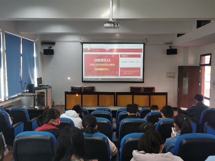 随后,同学们通过网络直播倾听北京主会场领唱《宪法伴我们成长》,见证第六届全国“学宪法 讲宪法”活动全国总决赛获奖名单公布以及观看部分优秀学生的展演。三位来自不同年龄段和不同地区的优秀学生通过故事、朗诵、演讲等形式阐释了对宪法的理解,使同学们感受到了宪法的魅力。