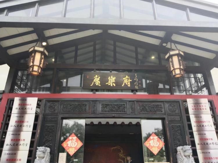 在对方工作人员的带领下,同学们参观了锦二小学,锦二小学属于桃花小镇的工艺产业和文化旅游项目,工作人员详细地描述了锦二小学的前世今生。现在的锦二小学由非遗主题展馆和民宿组成,非遗主题展馆是改造成的集展示、教学、培训等为一体的综合性非遗文化传习基地,总建筑面积为1000多平方米,目前已经引进了木雕、铜雕、广绣等国内知名非遗项目,展厅内陈列着国家级工艺大师们珍贵的创作精品。在工作人员的详细介绍下,同学们深刻领悟到桃花小镇的文化底蕴与历史气息。