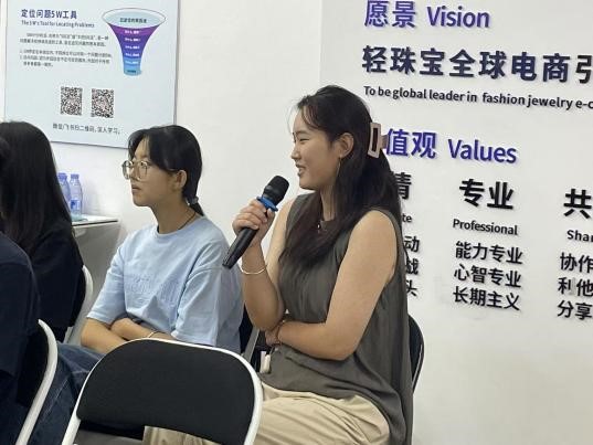 随后,他还向同学们展示与讲解了公司原创设计的首饰珠宝,首饰样式繁多风格各异,每一件作品都讲述着不同的故事、蕴含着的文化底蕴与创新精神彰显着设计师的独特视角与精湛工艺,给大家留下了深刻的产品印象。