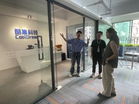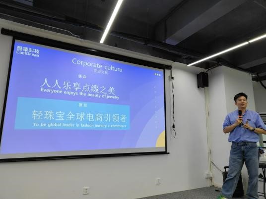 活动伊始,同学们在酷集信息科技有限公司总经理陈君生的带领下参观了企业的内部,包括工作室,摄影棚,会议室等办公场所。在参观过程中,陈君生师兄详细介绍了公司从2013年前专注于OEM代工业务,到后来敏锐捕捉到跨境电商的风口,勇敢转型发展跨境电商的历程。通过参观同学们对公司的工作环境与文化氛围有了初步的了解。