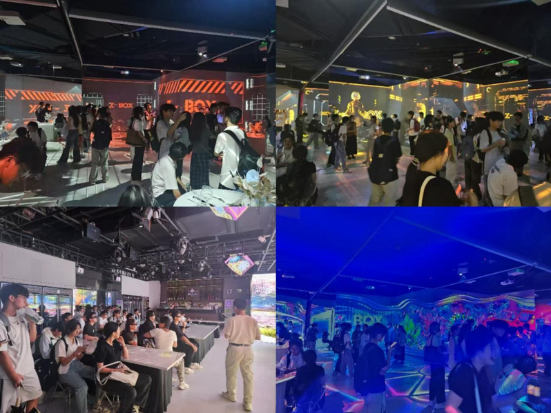 随后,学子们重点探访“Z-BOX 沉浸式互动消费新空间”,这一融合“技术支撑+消费转化+体验叙事”的创新场景,恰好与双学位培养目标高度契合。空间内,线上小程序与线下体感交互联动,游客通过积分玩法实现“游戏 -互动-消费”闭环,而背后依托的正是计算机专业的小程序开发、数据交互技术,以及旅游管理的消费心理分析、场景动线设计能力。