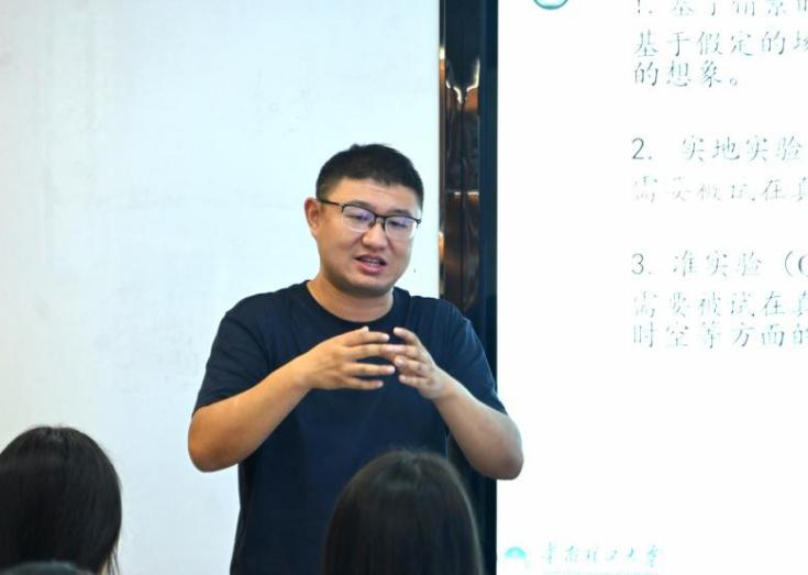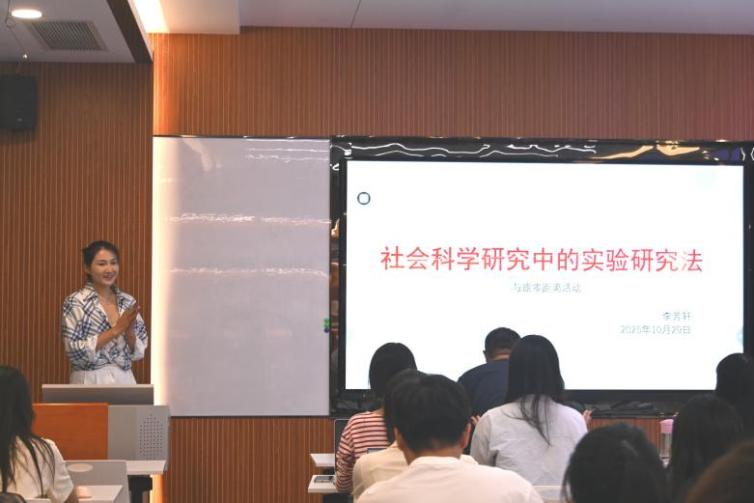 活动伊始,旅游管理系本科教研服务中心主任徐健副教授介绍了本次活动的分享主题和李芳轩教授的主要研究领域。李芳轩老师以“社会科学研究中的实验研究”为核心展开讲解,深入浅出地介绍了实验法的基本逻辑、主要类型及其在社会科学研究中的具体应用。