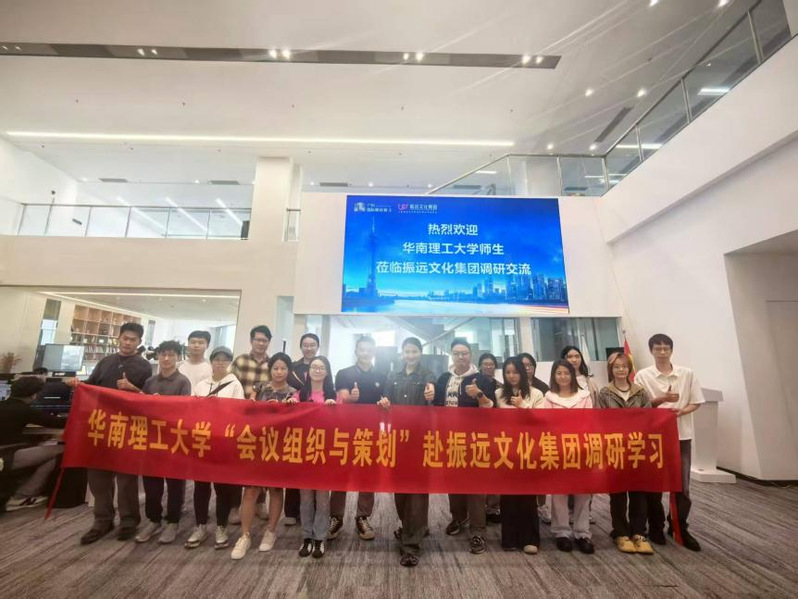 2025年11月5日下午,华南理工大学旅游管理系2022级旅游管理专业与会展经济与管理专业的同学,在《会议组织与策划》课程任课教师徐健副教授的带领下,前往广东振远文化集团开展课程实践教学活动。此次活动旨在通过校企联动的形式,让学生在真实的企业场景中感受会议策划与品牌传播的实际运作逻辑,进一步强化课堂教学的实践导向,提升专业学习的应用思维与创新能力。