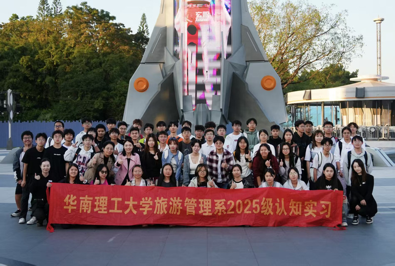 2025年11月24日下午,旅游管理系2025级旅游管理专业和“旅游管理+计算机科学与技术”双学士学位项目(全国首个该方向双学位项目)的学子们,在杨莹老师和毕斗斗老师的带领下,赴广州白云区的星际世界•南湖乐园开展认知实习。星际世界•南湖乐园定位为国内首个RPG(角色扮演游戏)科幻主题乐园,其前身为华南地区首个主题公园广东南湖游乐园。经升级改造后,于2025年7月5日正式开园。星际世界•南湖乐园在强大的科技力量加持下,打造了25万米方米的科幻主题沉浸式游乐中心。