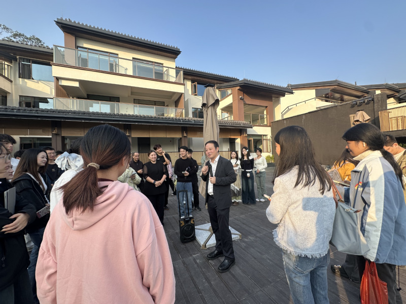 随后召开专题研讨会。会上,大观园负责人直面园区发展痛点,围绕设施升级、业态创新、客群拓展等方面提出当前存在的问题与发展诉求。吴志才教授结合实地调研情况,针对温泉主题综合景区的未来发展提出“三新”策略,即面向“新”需求,打造“新”业态,创新“新”模式,强调要精准把握当代游客多元化、品质化消费需求,优化产品供给结构,创新合作引资模式,推动园区从传统温泉度假向复合型文旅目的地转型。同学们结合课程所学,积极建言献策,就产品创新、品牌营销、智慧化升级等方面与企业负责人展开热烈探讨,现场交流氛围热烈。