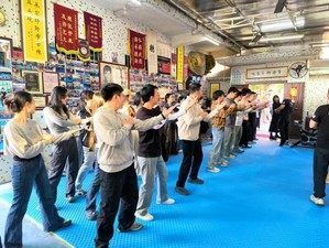 随后,鹤山市咏春拳代表性传承人亲临现场,为同学们带来了一场干货满满的咏春拳法教学。从抱拳礼的文化内涵到基础招式的动作要领,传承人耐心示范、细致讲解,同学们认真模仿、相互切磋,在一招一式的实践中直观感受咏春拳的刚柔并济与文化底蕴。