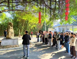 为深化学生对非遗文化旅游融合发展的认知,提升旅游研究与乡村振兴实践能力,12月17日下午,李沐纯教授、陈木龙副书记带领2025级旅游管理专业、部分乡村振兴学专业研究生,赴鹤山市梁赞公园开展《旅游研究方法》课程实践活动。此次实践得到鹤山市文化广电旅游体育局和古劳镇政府的大力支持,全程安排领导工作人员陪同讲解,让同学们在实地研学中感受非遗魅力、积累实践经验。