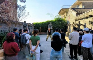 实践活动以“实地考察+体验互动”的多元形式展开。在当地干部谭主任的引导和详细介绍下,同学们参观了梁赞公园核心区域,深入考察文化长廊的非遗展示设计、武术雕塑的游客体验适配性,进而理解咏春文化物质载体的旅游呈现逻辑。