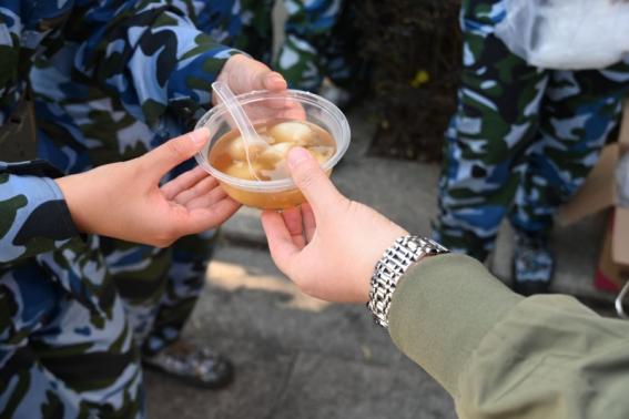 活动现场暖意融融,江鹏老师亲手为同学们送上一碗碗热气腾腾的姜汁汤圆。清甜的姜汁混着软糯的团子,一口下去,暖意从舌尖漫遍全身,不仅驱散了连日军训积攒的疲惫,更将一份真切的关怀送进了每一位同学的心房。这份暖胃又暖心的小美好,让大家深切感受到了学院无微不至的关怀与浓浓的温情。