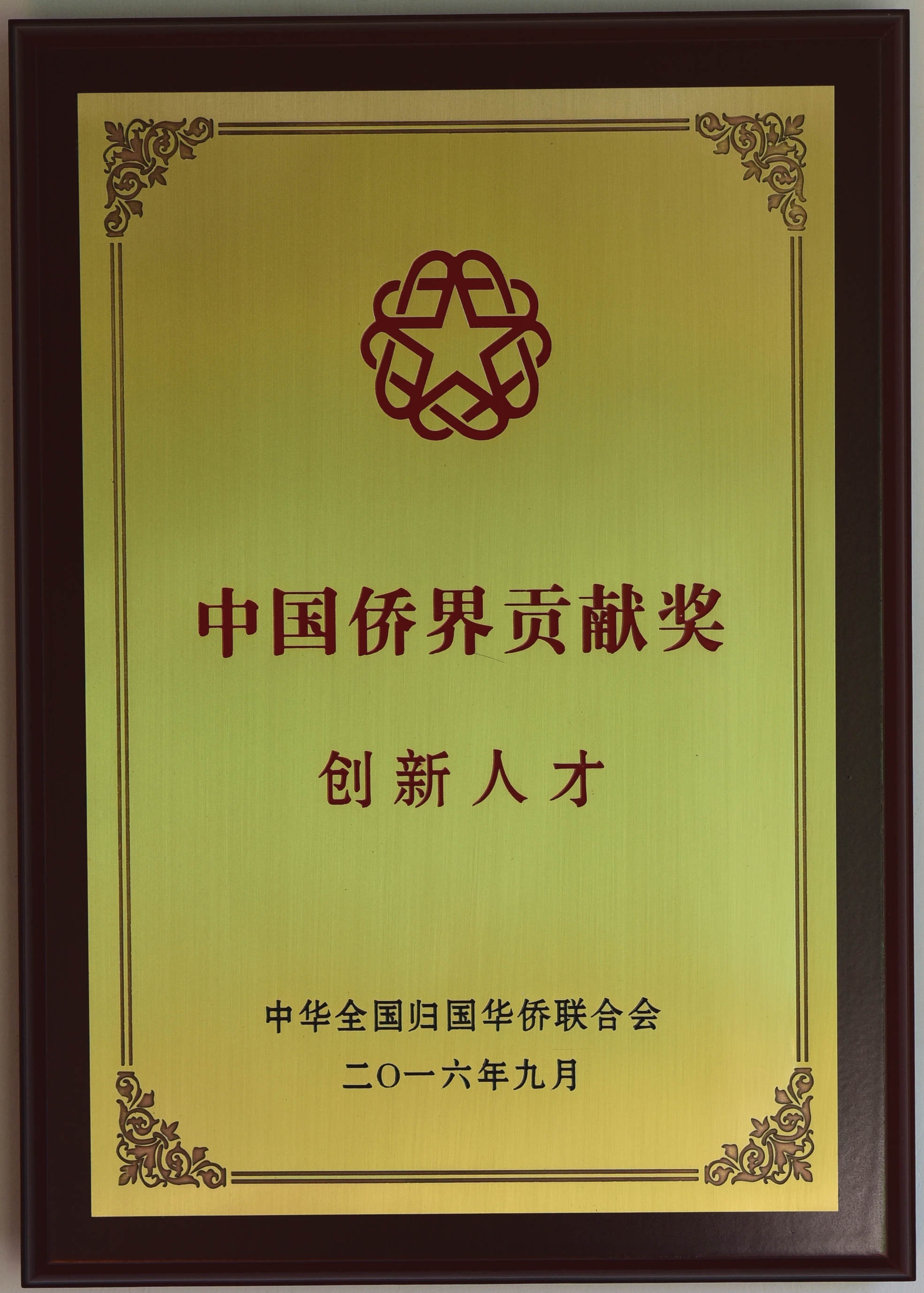 “中国侨界贡献奖”由中国侨联于2003年设立,每两年举办一次,目的是为了展示和表彰新侨在回国的创新创业成果,以吸引更多的海外侨界人才以多种形式为国服务。2016年为第六届。全国共有169人获创新人才奖,其中广东省仅有7人。