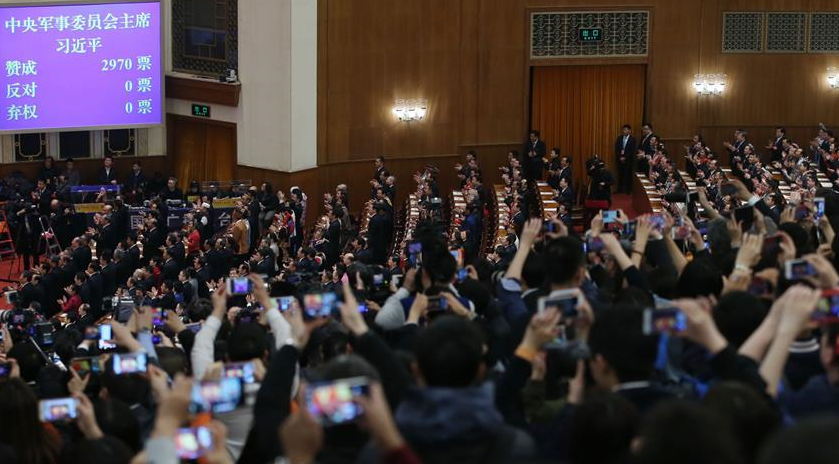3月17日,十三届全国人大一次会议依法选举产生新一届国家机构领导人员,新当选国家机构领导人员进行宪法宣誓。参加会议的广东代表团代表在人民大会堂现场见证庄严场景,难以抑制自豪与激动。代表们相信,在习近平新时代中国特色社会主义思想指引下,新一届国家领导人将带领全国人民书写新时代新篇章。