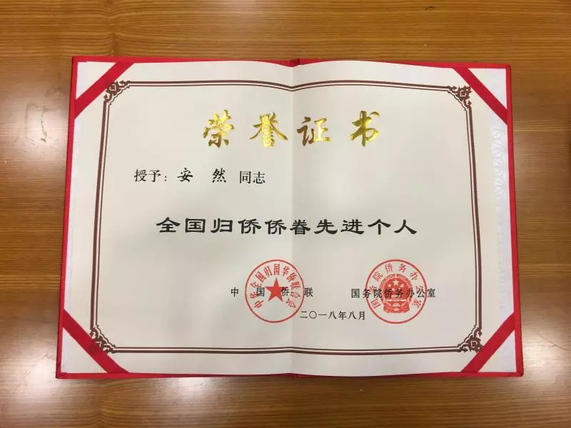 会上宣读表彰了侨联杰出人物、先进个人和先进集体。安然教授获得“全国归侨侨眷先进个人”表彰。