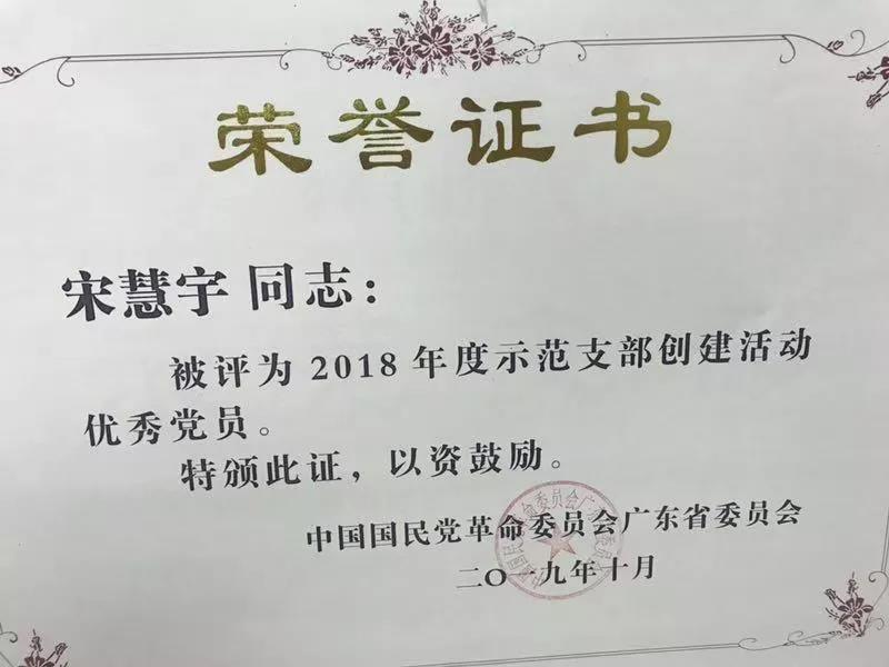 在会议上,民革华工支部党员党志荣获民革荣誉人物奖,这是首次设立的奖项,全省只有17人获奖。民革华工支部委员宋慧宇被评为2018年度示范支部创建活动优秀党员,民革华工支部评为2018年度示范支部,同时荣获2018-2019年度参政议政工作三等奖。