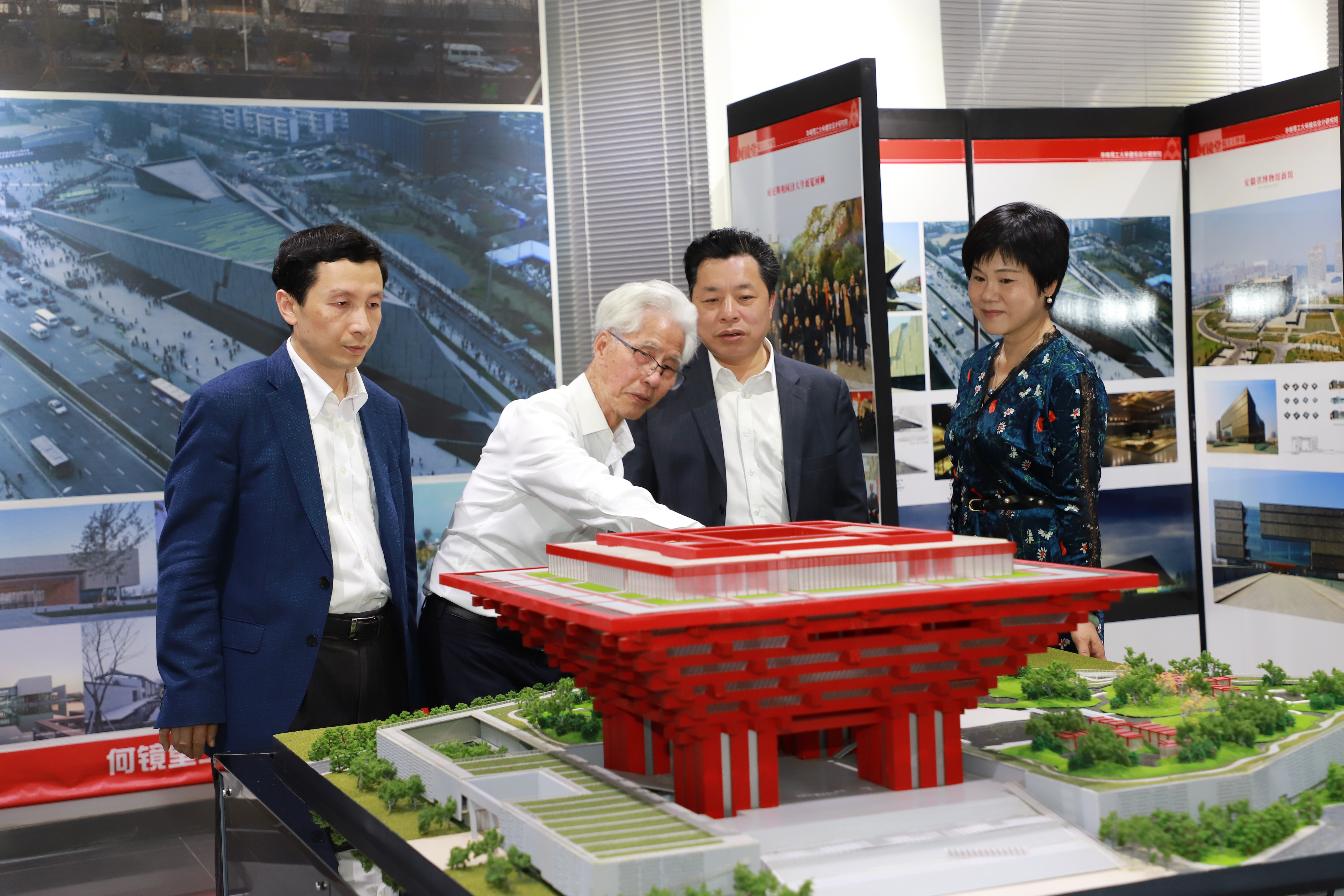 李阳春副部长一行参观了何镜堂院士的工作室和设计代表作品展览室,何院士向来宾介绍了工作室创建历程和建造工程所包含的创作理念、建筑科技及岭南特色,表示工作室将继续致力于在建筑设计理念、科技领域的开拓创新永立潮头,为广东省乃至全国的经济社会发展建设做出更多的贡献。李阳春副部长对何镜堂院士建筑设计作品创作的高度和广度以及这些高质量的建筑作品所汇聚的中国城市建设新风貌和所构筑的中国城市新时代愿景给予高度评价和赞赏,他称赞何镜堂院士作为杰出的建筑学家和教育家,是当代中国建筑学科的领军人物和公认的建筑大师,也是广东省无党派人士的杰出代表人物,希望何镜堂院士和团队能够继续发挥优势,为广东省的经济社会建设和学校的各项事业发展建言献策、多做贡献。