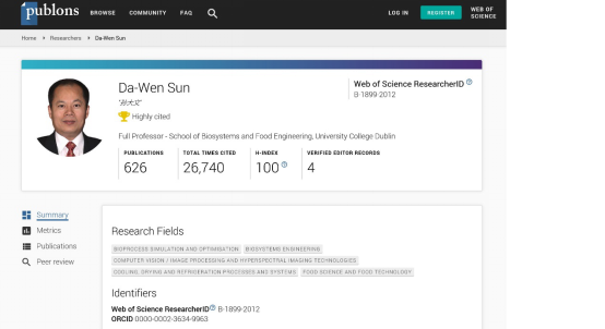根据统计,孙大文院士目前已在世界著名杂志和国际会议上发表学术论文1000多篇,其中600多篇为Web of Science收录的同行评审期刊论文,71篇论文入选ESI农业科学“高被引/热点论文”。2015年至2019年,他连续五年被科睿唯安(原汤森路透)评为“高被引科学家”。