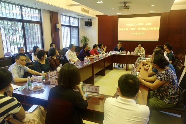 学校十七次党代会的胜利召开,描绘了学校建设的美好蓝图,开启了学校未来发展的新篇章。在党代会胜利召开的重要时刻,为进一步凝聚共识,凝聚人心,凝聚智慧,凝聚力量,沿着学校党委的指引方向不断前进,6月18日下午,华南理工大学统一战线在民主楼会议室召开了传达全国“两会”精神暨学校十七次党代会精神座谈会,邀请全国政协委员、广东省政协常委、民盟广东省委会副主委、物理与光电学院邓文基教授与统一战线成员分享“两会”心得,作2020年全国“两会”精神的传达学习报告。学校各级人大代表、政协委员、政府参事,各民主党派、统战团体负责人和委员代表参加了报告会。学校党委常委、统战部王丹平部长主持会议。