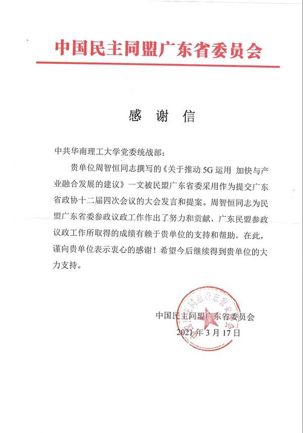 我校民盟成员周智恒老师建言献策获肯定