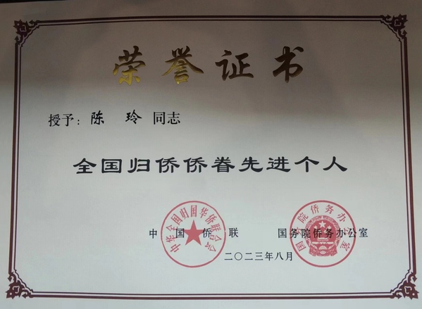 8月31日至9月3日,第十一次全国归侨侨眷代表大会在北京召开。全国各地近1200名归侨侨眷代表和来自100多个国家近600名海外侨胞出席,一批先进模范人物在会上受到表彰。华南理工大学归国华侨联合会会员、食品科学与工程学院教授陈玲获得“全国归侨侨眷先进个人”称号。