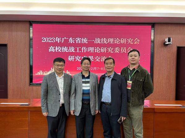 近日,广东省统一战线理论研究会高校统战工作理论研究委员会研究成果交流会在肇庆举行。省委统战部副部长黄育振,省委统战部研究室主任栗涛,部分高校领导及全省高校统战部门负责同志、统战干部和专家学者近百人参加会议。学校党委统战部常务副部长夏正林及获奖教师代表参加会议。