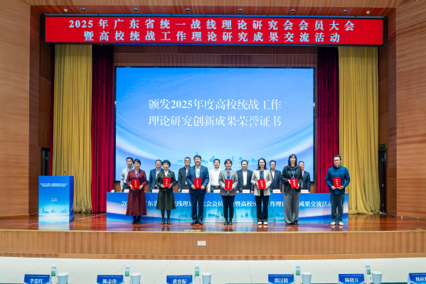 12月10—11日,2025年广东省统一战线理论研究会高校统战工作理论研究成果交流活动在东莞举办。省委统战部常务副部长郭汉毅,省委统战部副部长、广东省统一战线理论研究会会长黄育振及有关高校领导和全省高校统战部门负责同志、统战干部和专家学者近百人参加会议。华南理工大学党委统战部部长孙连坡及获奖教师代表参加会议。