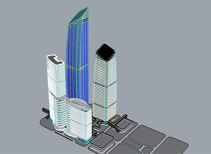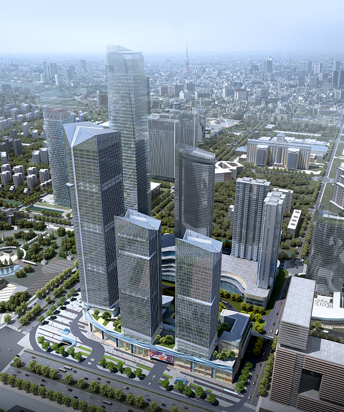 [项目时间]:2014年 [项目地点]:广东深圳 [项目概况]:超高层建筑群,集办公、居住、酒店、商业于一体的高端城市综合体,包括T1~T8共8栋塔楼,T1塔楼350m、T5塔楼196m